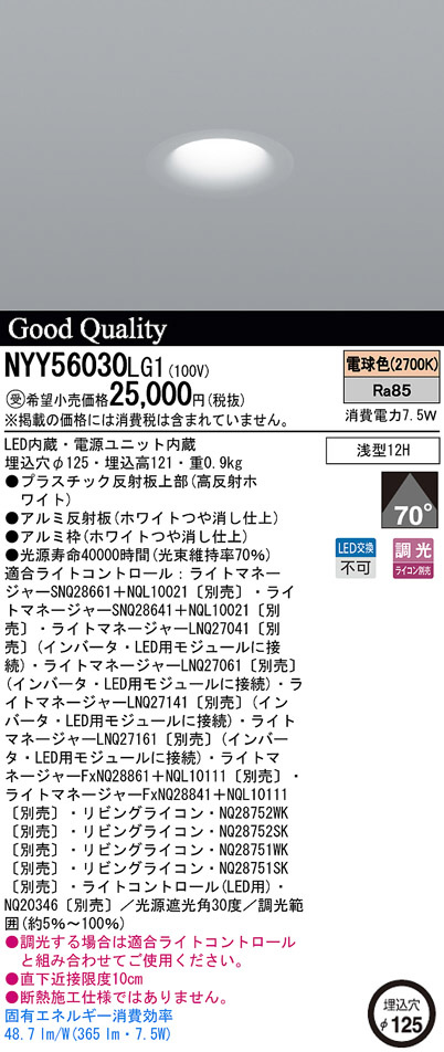 Panasonic LED ¥À¥¦¥ó¥é¥¤¥È NYY56030LG1
