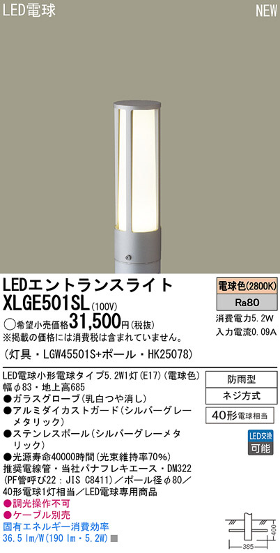 Panasonic LED¥¨¥¯¥¹¥Æ¥ê¥¢¡¦¥¢¥¦¥È¥É¥¢ XLGE501SL