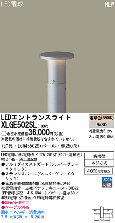 Panasonic LED¥¨¥¯¥¹¥Æ¥ê¥¢¡¦¥¢¥¦¥È¥É¥¢ XLGE502SL