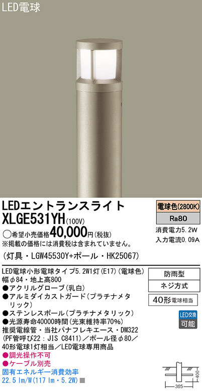 Panasonic LED¥¨¥¯¥¹¥Æ¥ê¥¢¡¦¥¢¥¦¥È¥É¥¢ XLGE531YH