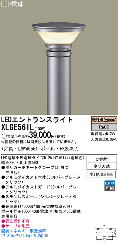 Panasonic LED ¥¨¥¯¥¹¥Æ¥ê¥¢¡¦¥¢¥¦¥È¥É¥¢ XLGE561L