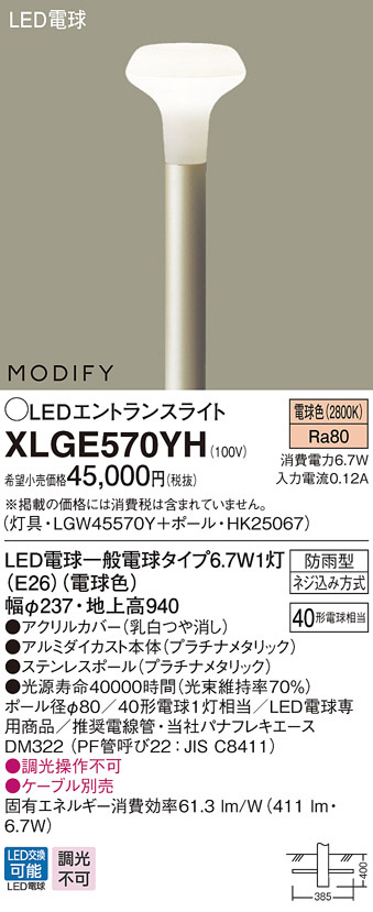 Panasonic LED ¥¨¥¯¥¹¥Æ¥ê¥¢¡¦¥¢¥¦¥È¥É¥¢ XLGE570YH