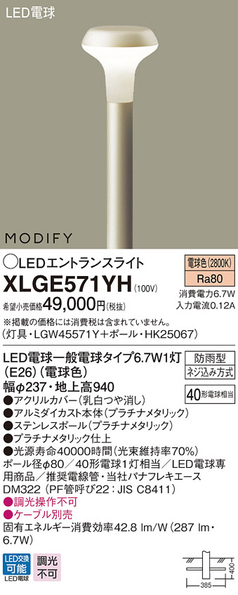 Panasonic LED ¥¨¥¯¥¹¥Æ¥ê¥¢¡¦¥¢¥¦¥È¥É¥¢ XLGE571YH
