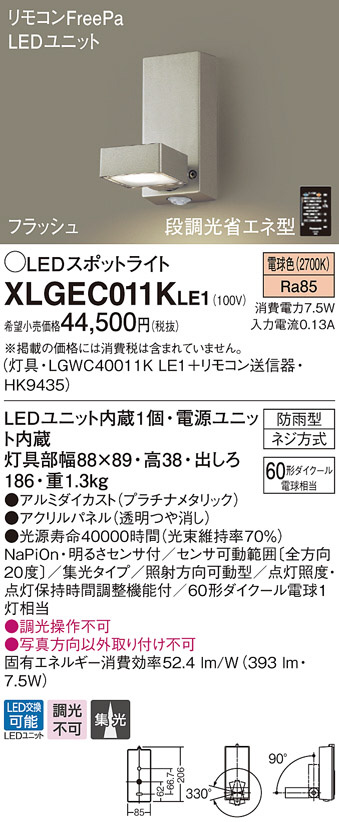 Panasonic LED ¥¨¥¯¥¹¥Æ¥ê¥¢¡¦¥¢¥¦¥È¥É¥¢ XLGEC011KLE1