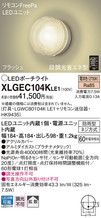 Panasonic LED ¥¨¥¯¥¹¥Æ¥ê¥¢¡¦¥¢¥¦¥È¥É¥¢ XLGEC104KLE1