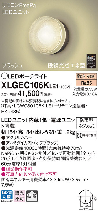 Panasonic LED ¥¨¥¯¥¹¥Æ¥ê¥¢¡¦¥¢¥¦¥È¥É¥¢ XLGEC106KLE1