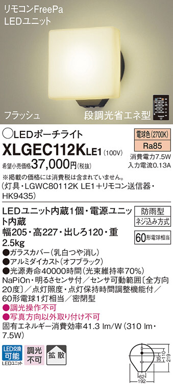 Panasonic LED ¥¨¥¯¥¹¥Æ¥ê¥¢¡¦¥¢¥¦¥È¥É¥¢ XLGEC112KLE1