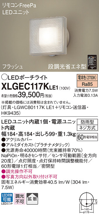 Panasonic LED ¥¨¥¯¥¹¥Æ¥ê¥¢¡¦¥¢¥¦¥È¥É¥¢ XLGEC117KLE1