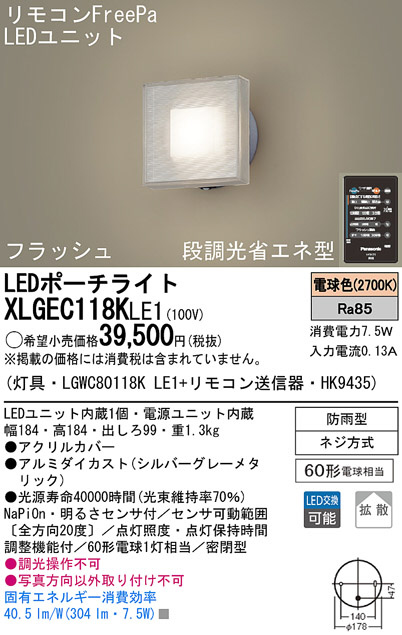 Panasonic LED¥¨¥¯¥¹¥Æ¥ê¥¢¡¦¥¢¥¦¥È¥É¥¢ XLGEC118KLE1
