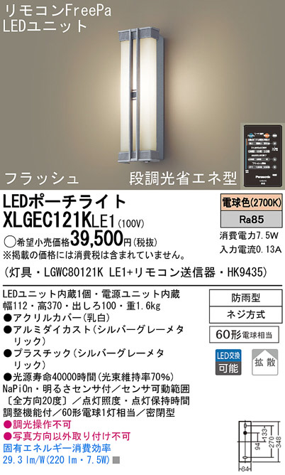 Panasonic LED¥¨¥¯¥¹¥Æ¥ê¥¢¡¦¥¢¥¦¥È¥É¥¢ XLGEC121KLE1