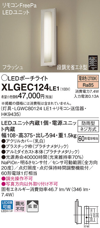 Panasonic LED ¥¨¥¯¥¹¥Æ¥ê¥¢¡¦¥¢¥¦¥È¥É¥¢ XLGEC124LE1