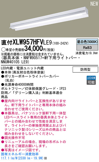 Panasonic LED¥¨¥¯¥¹¥Æ¥ê¥¢¡¦¥¢¥¦¥È¥É¥¢ XLW957HFVLE9