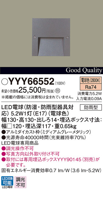Panasonic LED ¥¨¥¯¥¹¥Æ¥ê¥¢¡¦¥¢¥¦¥È¥É¥¢ YYY66552