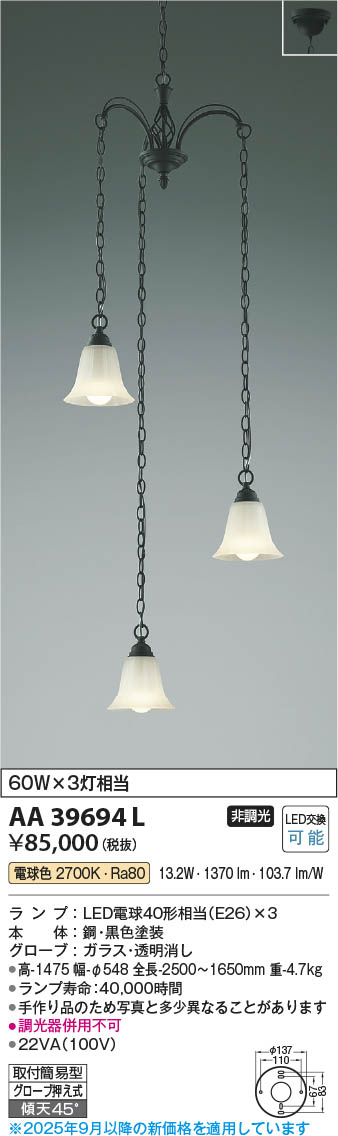 Koizumi ¥³¥¤¥º¥ß¾ÈÌÀ LED¿áÈ´¥·¥ã¥ó¥Ç¥ê¥¢ AA39694L