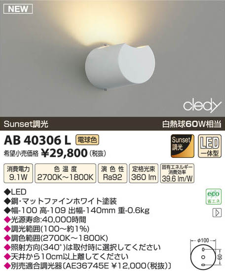 ¥³¥¤¥º¥ß¾ÈÌÀ KOIZUMI LED¥Ö¥é¥±¥Ã¥È AB40306L