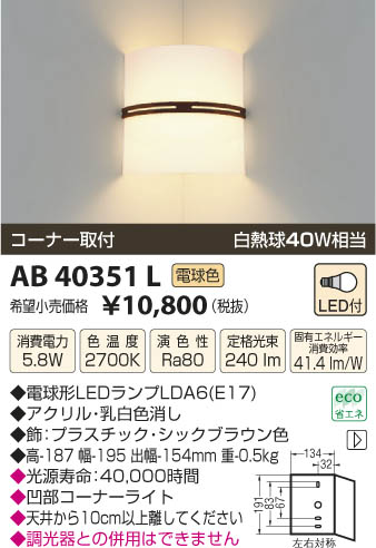 ¥³¥¤¥º¥ß¾ÈÌÀ KOIZUMI ¥Ö¥é¥±¥Ã¥È LED AB40351L