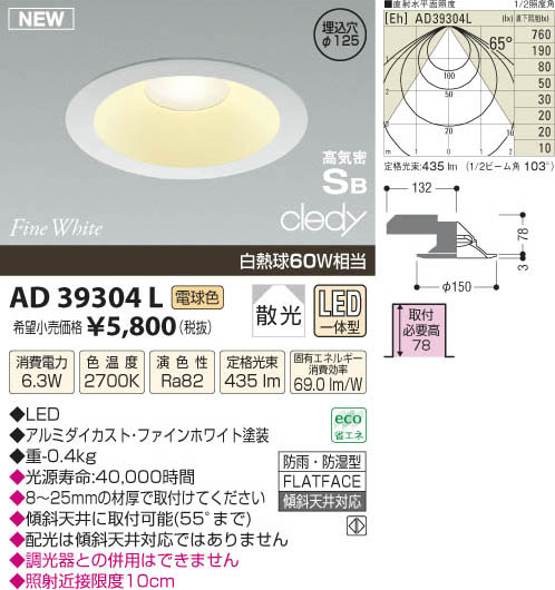 ¥³¥¤¥º¥ß¾ÈÌÀ KOIZUMI LED¹âµ¤Ì©¥À¥¦¥ó¥é¥¤¥È AD39304L