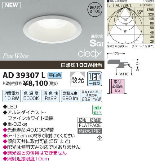 ¥³¥¤¥º¥ß¾ÈÌÀ KOIZUMI LED¹âµ¤Ì©SG·Á¥À¥¦¥ó¥é¥¤¥È AD39307L