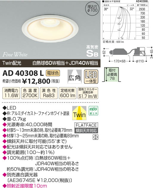 ¥³¥¤¥º¥ß¾ÈÌÀ KOIZUMI ¹âµ¤Ì©¥À¥¦¥ó¥é¥¤¥È LED AD40308L