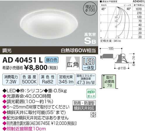 ¥³¥¤¥º¥ß¾ÈÌÀ KOIZUMI ¹âµ¤Ì©¥À¥¦¥ó¥é¥¤¥È LED AD40451L