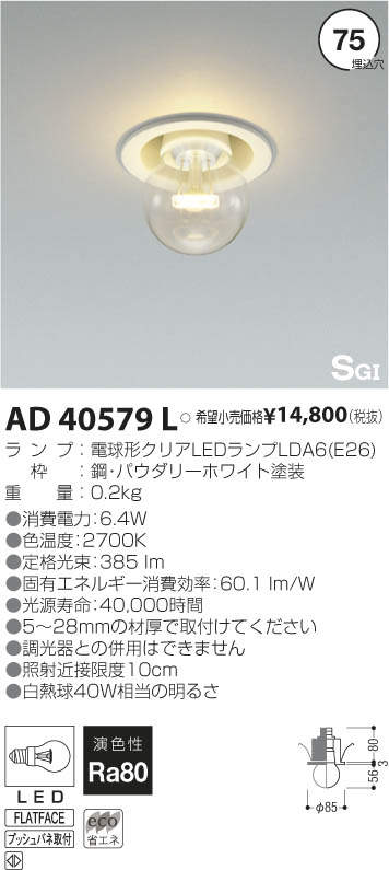¥³¥¤¥º¥ß¾ÈÌÀ KOIZUMI LED ¥À¥¦¥ó¥é¥¤¥È AD40579L