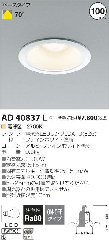 ¥³¥¤¥º¥ß¾ÈÌÀ KOIZUMI LED ¥À¥¦¥ó¥é¥¤¥È AD40837L