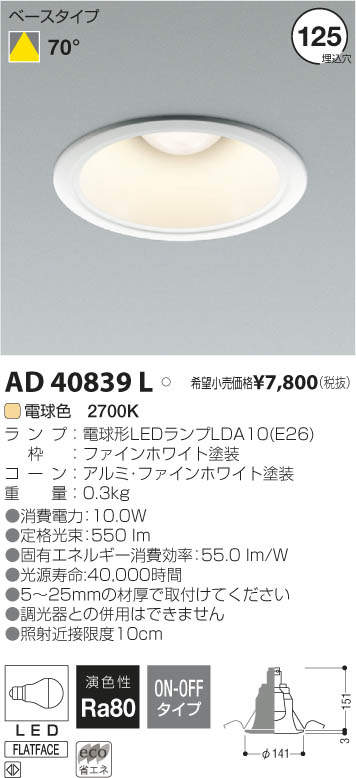¥³¥¤¥º¥ß¾ÈÌÀ KOIZUMI LED ¥À¥¦¥ó¥é¥¤¥È AD40839L