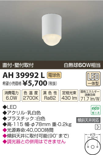 ¥³¥¤¥º¥ß¾ÈÌÀ KOIZUMI ¾®·¿¥·¡¼¥ê¥ó¥° LED AH39992L