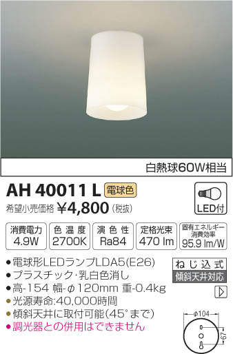 ¥³¥¤¥º¥ß¾ÈÌÀ KOIZUMI ¾®·¿¥·¡¼¥ê¥ó¥° AH40011L