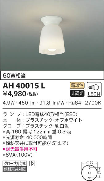 KOIZUMI ¥³¥¤¥º¥ß¾ÈÌÀ ¾®·¿¥·¡¼¥ê¥ó¥° AH40015L