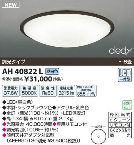 ¥³¥¤¥º¥ß¾ÈÌÀ KOIZUMI LED¥·¡¼¥ê¥ó¥° AH40822L