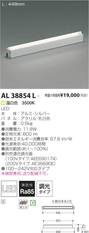¥³¥¤¥º¥ß¾ÈÌÀ KOIZUMI LED´ÖÀÜÍÑÅô¶ñ AL38854L