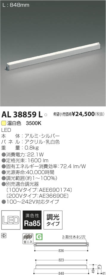 ¥³¥¤¥º¥ß¾ÈÌÀ KOIZUMI LED´ÖÀÜÍÑÅô¶ñ AL38859L