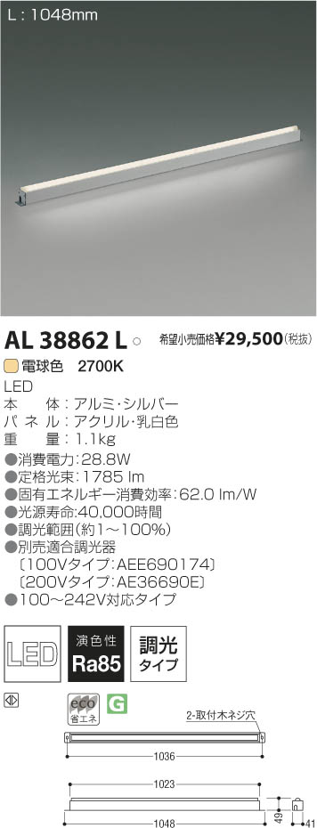 ¥³¥¤¥º¥ß¾ÈÌÀ KOIZUMI LED´ÖÀÜÍÑÅô¶ñ AL38862L