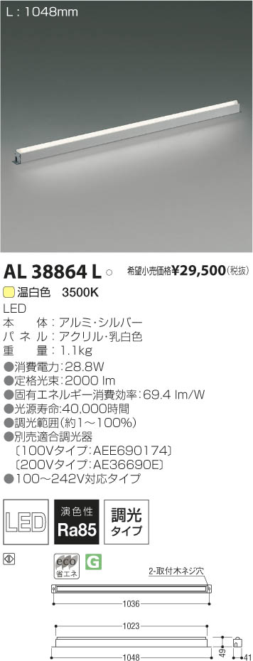 ¥³¥¤¥º¥ß¾ÈÌÀ KOIZUMI LED´ÖÀÜÍÑÅô¶ñ AL38864L