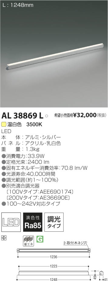 ¥³¥¤¥º¥ß¾ÈÌÀ KOIZUMI LED´ÖÀÜÍÑÅô¶ñ AL38869L