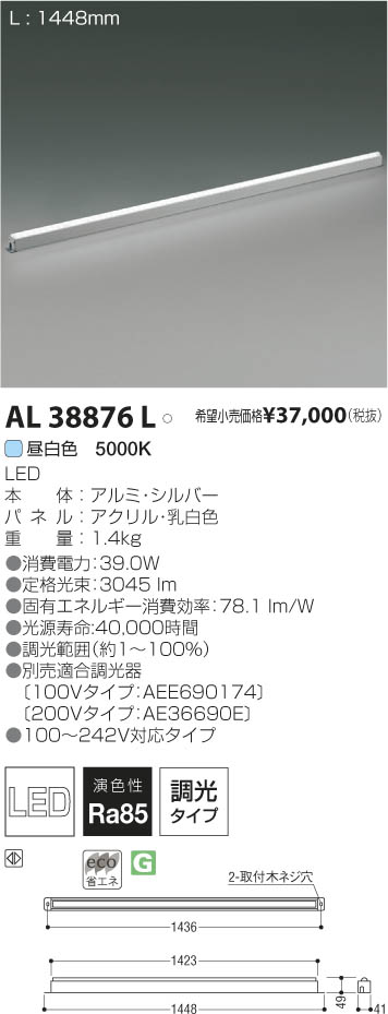 ¥³¥¤¥º¥ß¾ÈÌÀ KOIZUMI LED´ÖÀÜÍÑÅô¶ñ AL38876L