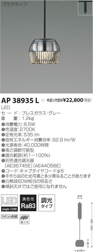 ¥³¥¤¥º¥ß¾ÈÌÀ KOIZUMI LED ¥Ú¥ó¥À¥ó¥È AP38935L