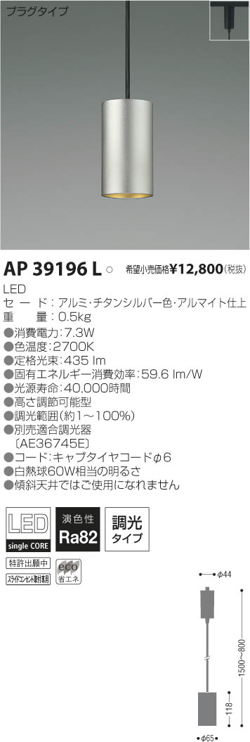 ¥³¥¤¥º¥ß¾ÈÌÀ KOIZUMI LED¥Ú¥ó¥À¥ó¥È AP39196L