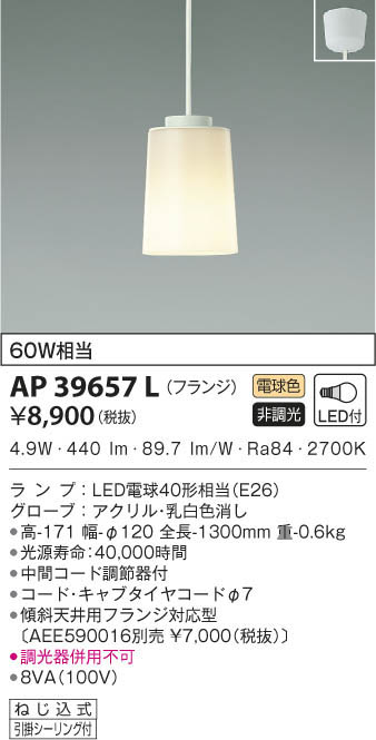 KOIZUMI ¥³¥¤¥º¥ß¾ÈÌÀ ¥Ú¥ó¥À¥ó¥È AP39657L