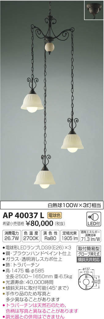 ¥³¥¤¥º¥ß¾ÈÌÀ KOIZUMI LED ¥Ú¥ó¥À¥ó¥È AP40037L