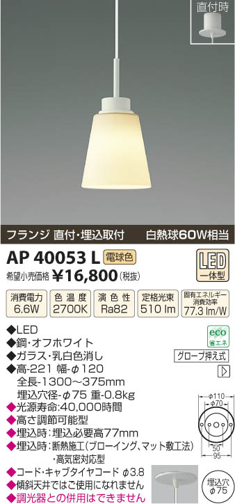 ¥³¥¤¥º¥ß¾ÈÌÀ KOIZUMI ¥Ú¥ó¥À¥ó¥È LED AP40053L