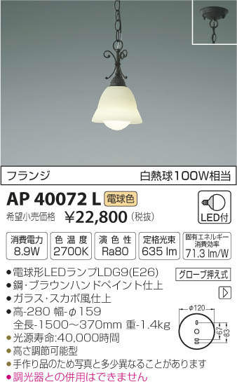 ¥³¥¤¥º¥ß¾ÈÌÀ KOIZUMI LED ¥Ú¥ó¥À¥ó¥È AP40072L