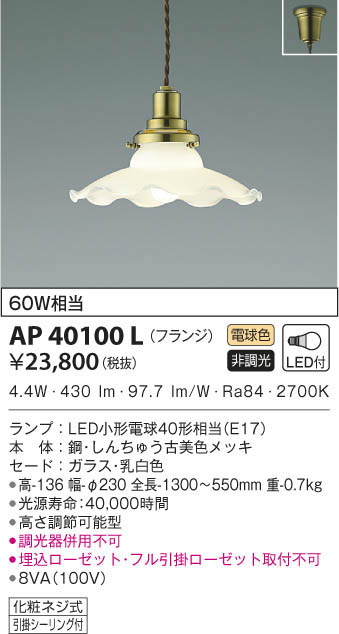 KOIZUMI ¥³¥¤¥º¥ß¾ÈÌÀ ¥Ú¥ó¥À¥ó¥È AP40100L