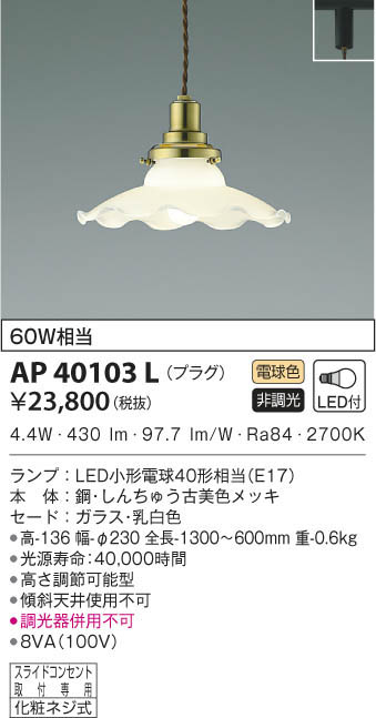 KOIZUMI ¥³¥¤¥º¥ß¾ÈÌÀ ¥Ú¥ó¥À¥ó¥È AP40103L