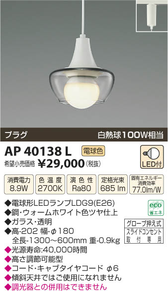 ¥³¥¤¥º¥ß¾ÈÌÀ KOIZUMI ¥Ú¥ó¥À¥ó¥È LED AP40138L