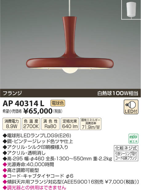 ¥³¥¤¥º¥ß¾ÈÌÀ KOIZUMI ¥Ú¥ó¥À¥ó¥È LED AP40314L