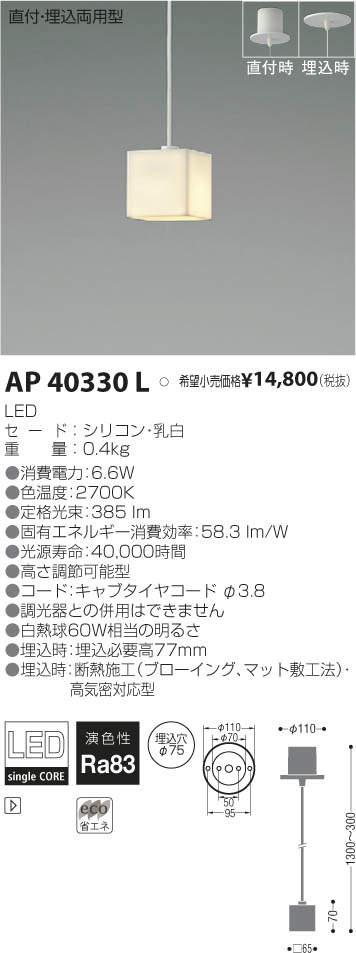 ¥³¥¤¥º¥ß¾ÈÌÀ KOIZUMI LED ¥Ú¥ó¥À¥ó¥È AP40330L