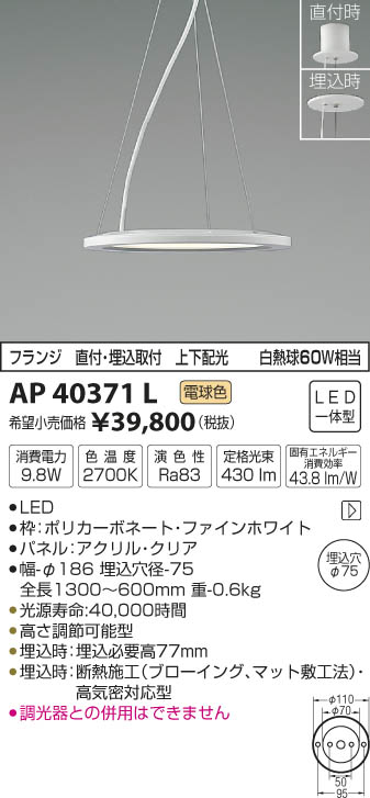 ¥³¥¤¥º¥ß¾ÈÌÀ KOIZUMI ¥Ú¥ó¥À¥ó¥È LED¡ÊÅŵ忧¡Ë AP40371L