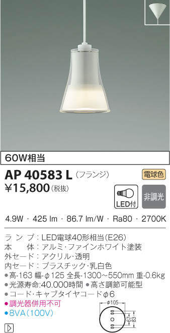 KOIZUMI ¥³¥¤¥º¥ß¾ÈÌÀ ¥Ú¥ó¥À¥ó¥È AP40583L